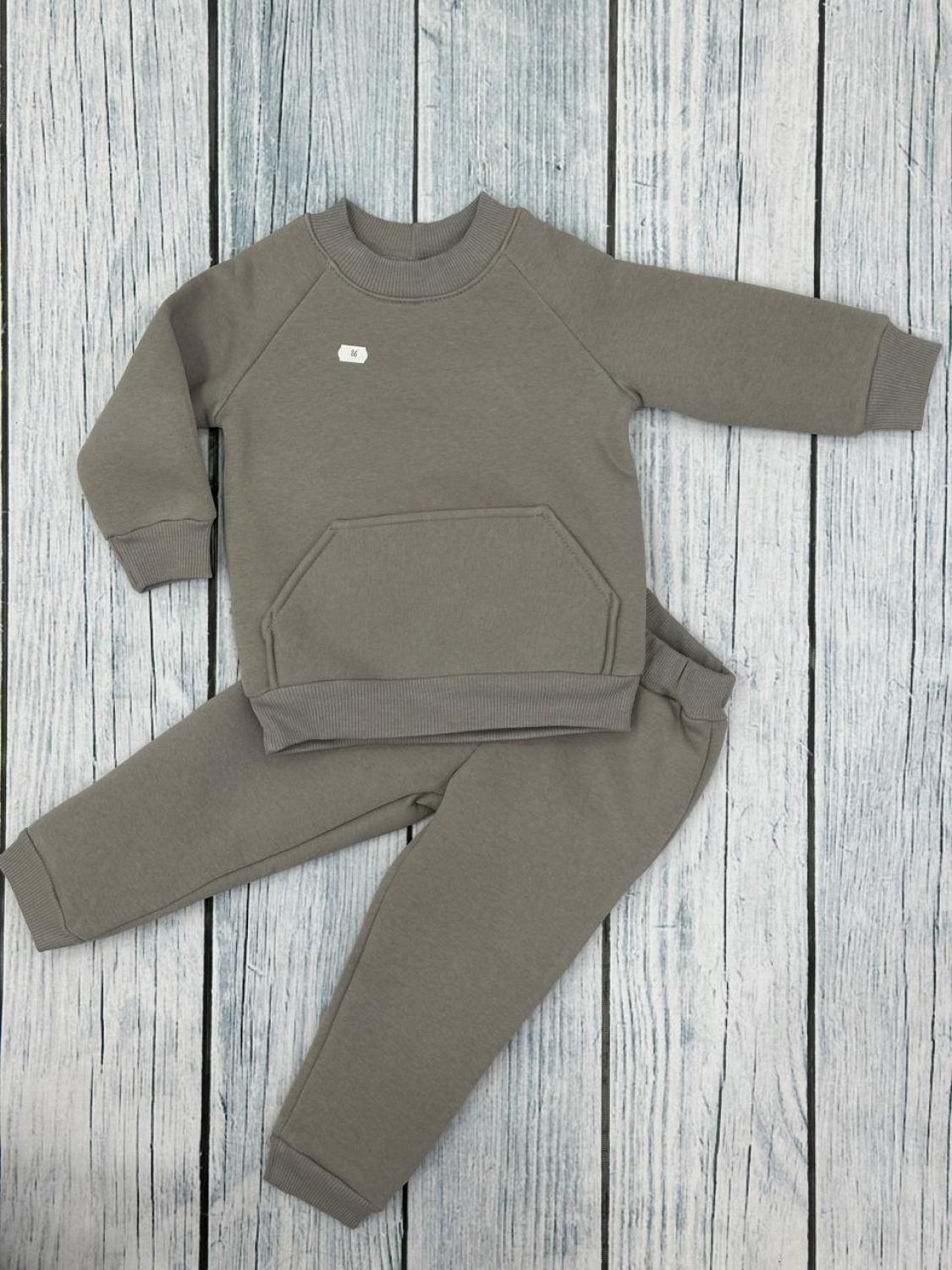 Купить оптом 297-СЕР. Свитшот + Штаны, хлопок 65%, 35% ПЭ, 3-х нитка (начес) серый ,80,86,92,98,104 в Дзержинске